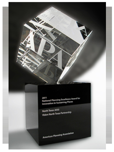 Vision North Texas and North Texas 2050 received the 2011 National Planning Excellence Award for Innovation in Sustaining Places from the American Planning Association (APA), the "Long Range Planning Award" from the Texas Chapter of the APA in 2005 and 2010, and numerous other recognitions from other agencies including the Greater Dallas Planning Council and the American Institute of Architects.