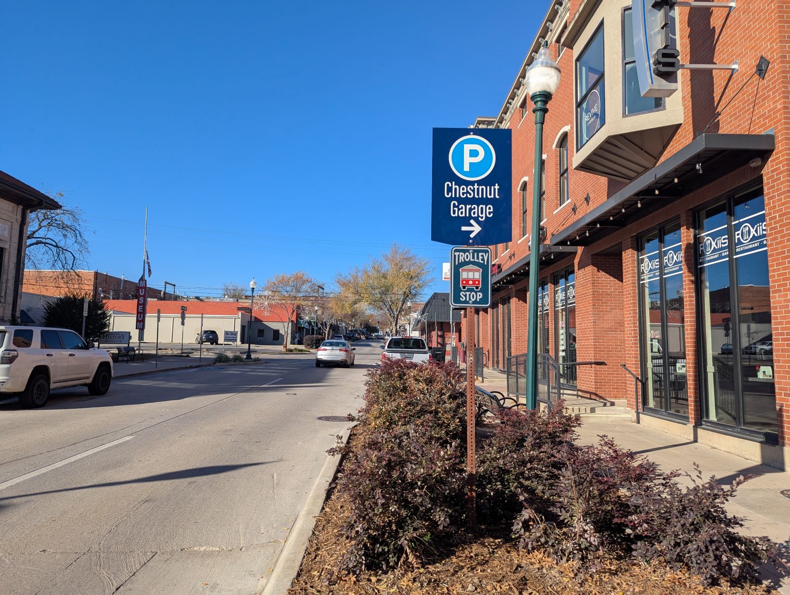 The city also created a map of public parking on their website and uses uniformly formatted signage to indicate parking at lots and garages. Since most parking is on the periphery of downtown, the city operates a free “Downtown Trolley” (14-passenger shuttle bus) from the lots and garages to the center of downtown.