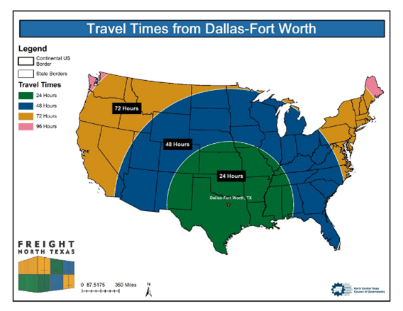 Our DFW region is a national railroad crossroads, as well as a national and international air cargo hub, making the region a natural logistics hub.