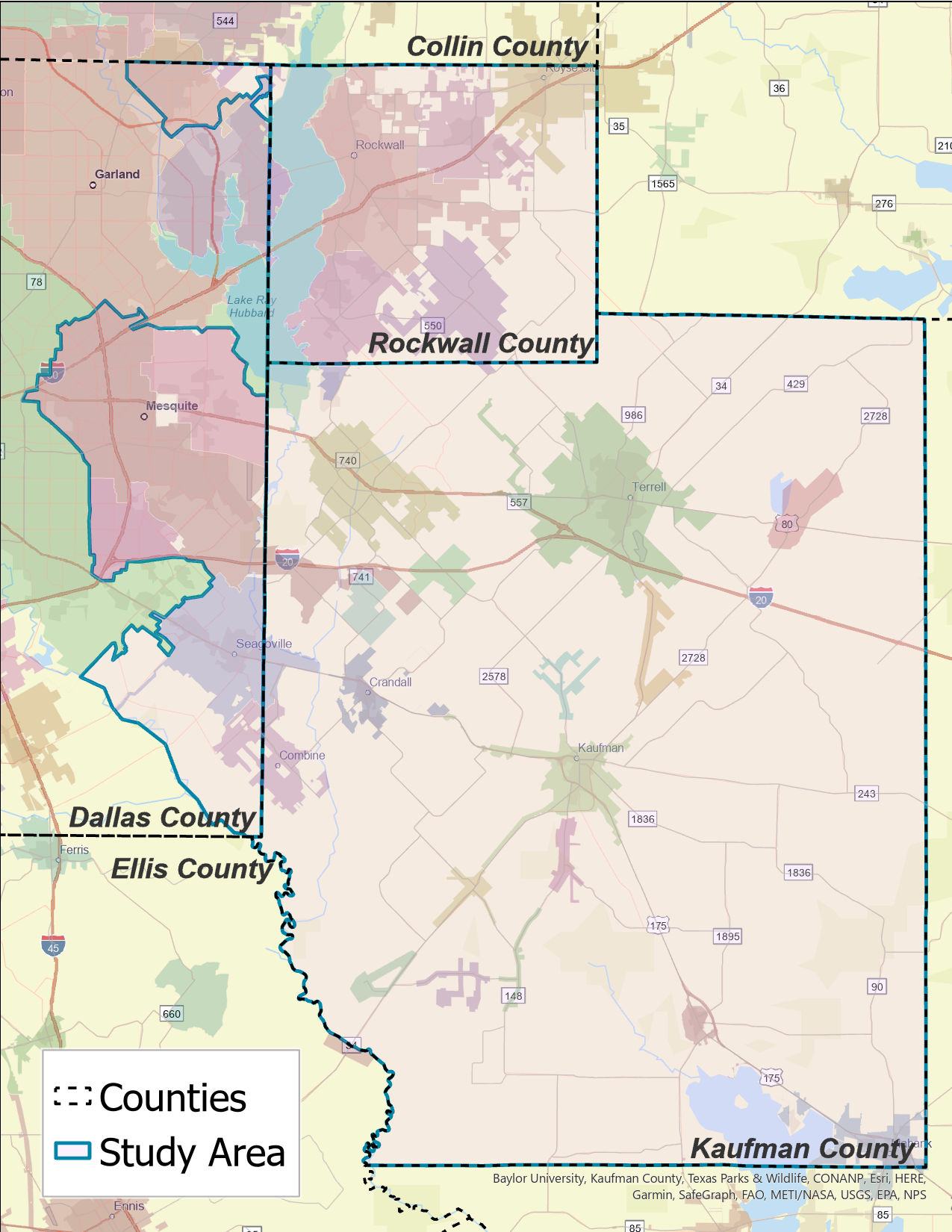 Eastern Dallas, Kaufman, and Rockwall Counties Regional Transit Study Map